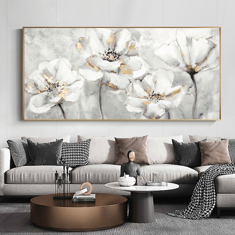 현대 추상 흰색과 황금 꽃 캔버스 회화 인쇄 및 포스터 벽 예술 사진 거실 홈 장식