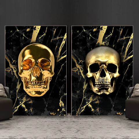 크라운 포스터 인쇄 캔버스 벽 예술 패션 해골 장식 그림과 추상 럭셔리 골드 Cranium