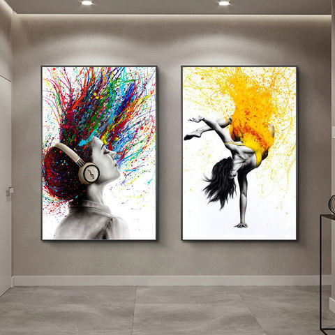 소녀 놀이 피아노 추상 낙서 포스터 장식 그림 인쇄 발레 음악 여자 컬러 그림 사용자 정의 액자 캔버스 벽 예술