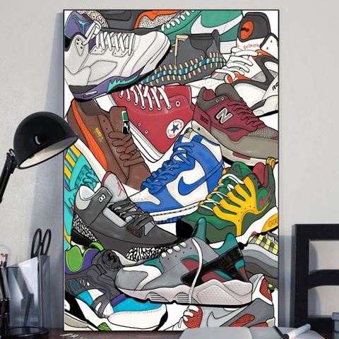낙서 농구 신발 벽 예술 포스터 홈 장식 팝 유화 벽화 그림 인쇄 삽화
