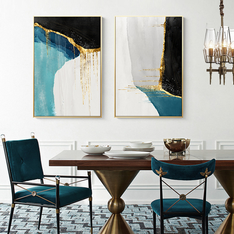 도매 사용자 정의 금박 블록 그림 파란색 포스터 인쇄 황금 벽 예술 그림 거실 장식 그림